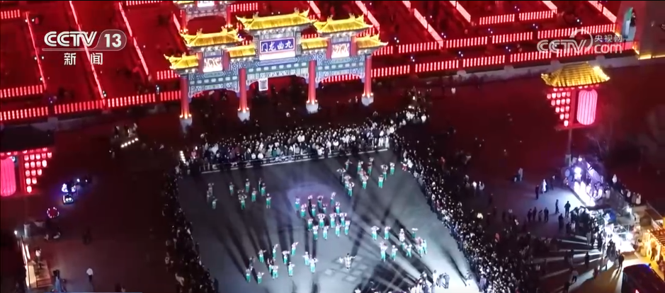 九曲燈陣占地面積近20畝,外部方正、內部曲折,宛如“九曲十八彎”的黃河。游客們跟隨奏樂隊伍,進入九宮九格的迷宮,穿行全長2.4公里的回廊,依次走過寓意著“福祿壽喜”的九個曲陣。兩邊的燈籠上懸掛著百家姓和十二生肖,游客們可以一邊轉九曲,一邊尋找印有自己姓氏和屬相的紅燈籠,沉浸式體驗元宵佳節(jié)的喜慶氛圍。除了九曲燈陣,社火展演、主題光影秀、無人機煙花秀也輪番上演。據了解,該活動將一直持續(xù)到正月十五。