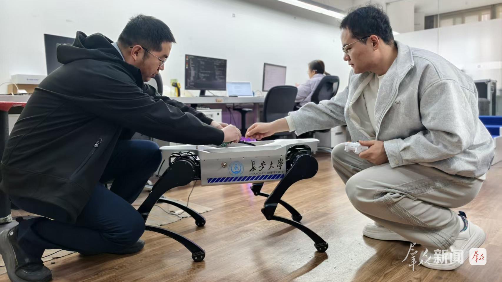 3月2日,西安云合智能機(jī)器人有限公司里,技術(shù)人員在優(yōu)化調(diào)試防爆四足巡檢機(jī)器人。這家由長安大學(xué)科研團(tuán)隊創(chuàng)辦的企業(yè),正在準(zhǔn)備新款產(chǎn)品的發(fā)布。