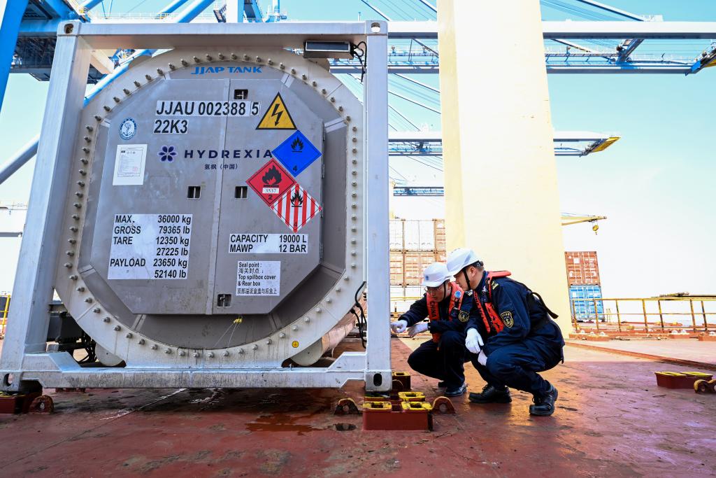 為了保障儲氫設(shè)備順利出運,在交通運輸部海事局的指導(dǎo)下,上海海事局與遼寧海事局針對企業(yè)需求,圍繞設(shè)備特性、運輸條件和安全要求,組織專家開展技術(shù)評估,對設(shè)備結(jié)構(gòu)完整性、安全附件配置、應(yīng)急處置措施及安全運輸條件等進行全鏈條論證和指導(dǎo)。