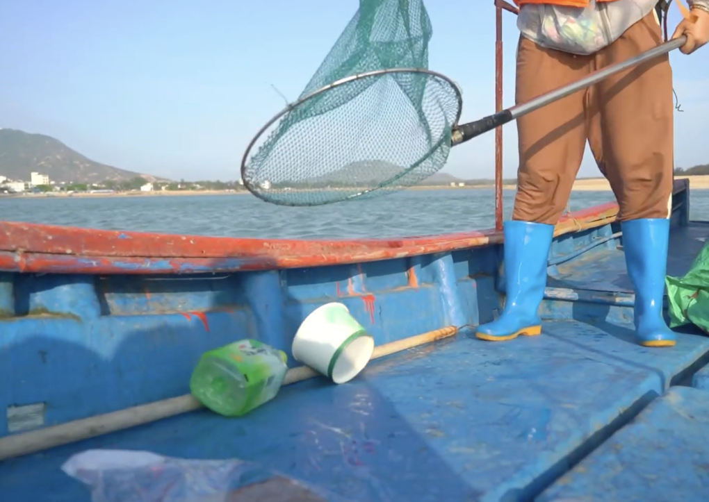 2003年,剛滿20歲的鐘強(qiáng)彬首次隨父出海,沒想到第一網(wǎng)收獲的近半是塑料垃圾。在當(dāng)?shù)貪O民的傳統(tǒng)觀念里,撈到的垃圾是“晦氣”,會被直接扔回海里。