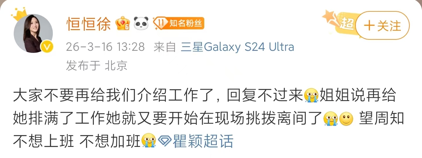 翻紅后,她不僅婉拒了大量媒體采訪,也沒(méi)有第一時(shí)間出現(xiàn)在直播間“321上鏈接”。相反,她的經(jīng)紀(jì)人更在社交媒體公開(kāi)喊話,“大家不要再給我們介紹工作了……望周知,不想上班,不想加班?!?/p>