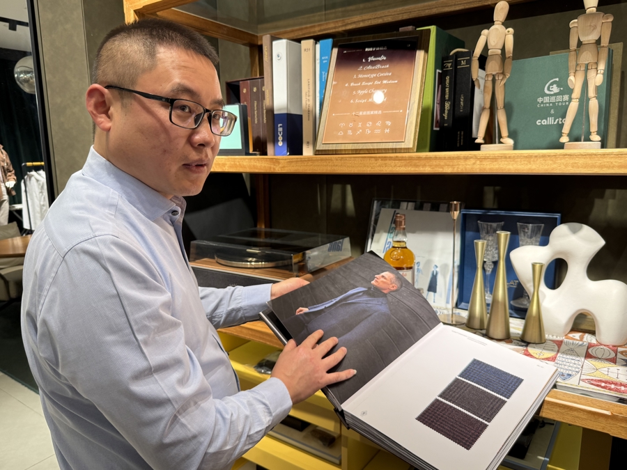 作為上海本土品牌,于建軍對自家的工藝十分自信:“我們的打版師就是從杰尼亞引入的高端人才,客人可以自由選擇杰尼亞、皮亞琴察、切瑞蒂1881等高端面料,定制價格從5000元到10萬元不等,定制周期在25個工作日左右。”他透露,前段時間一位卡塔爾王室成員來滬,一口氣定制了3件襯衫、一套西服,他上門去量體裁衣,去年12月完成定制后由翻譯官帶回卡塔爾,對方反饋“超級滿意”,表示還會來上海定制。