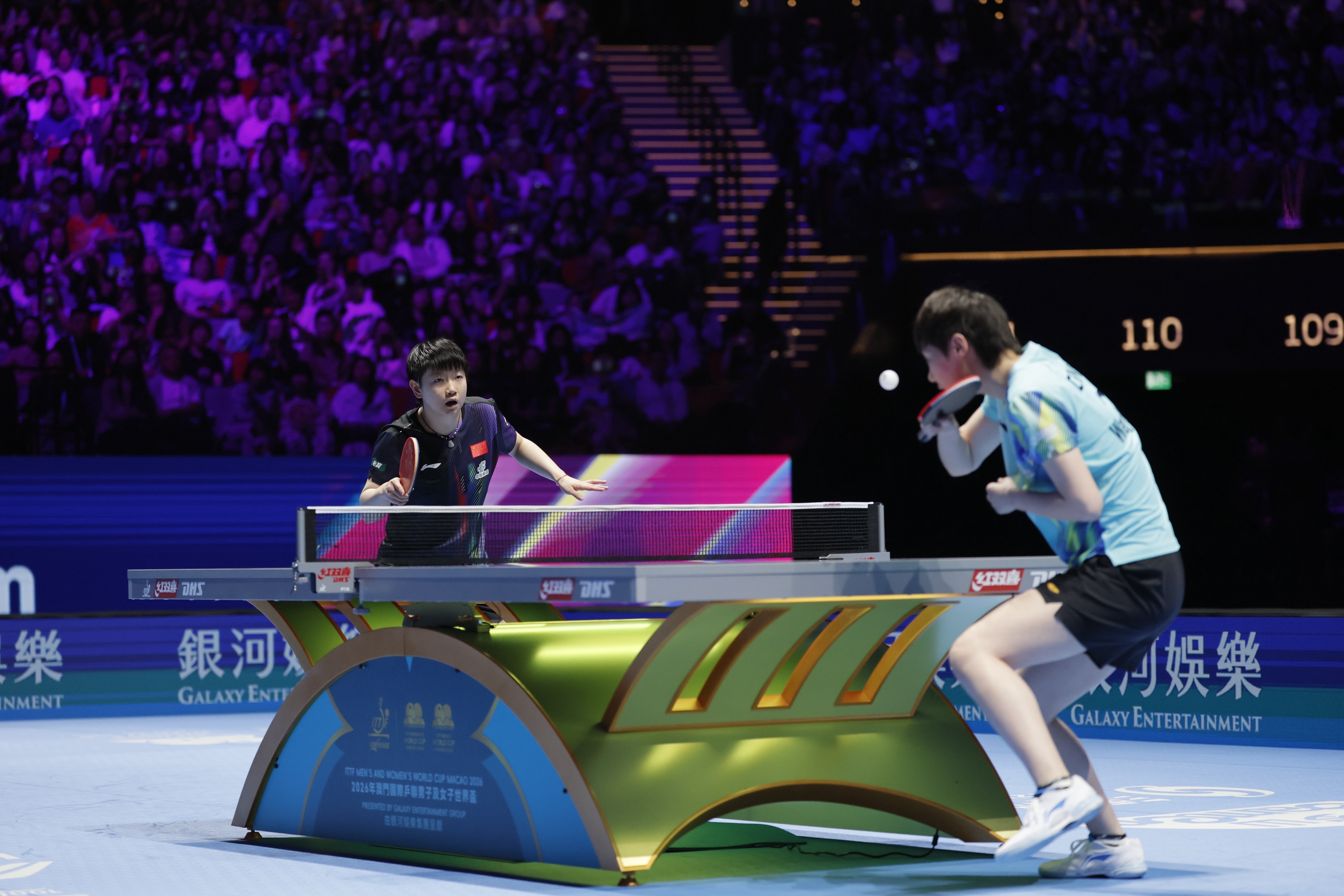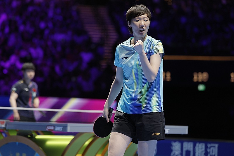 北京時間4月5日晚,國際乒聯(lián)單打世界杯女單決賽,孫穎莎4-1戰(zhàn)勝王曼昱,衛(wèi)冕冠軍,實(shí)現(xiàn)該項(xiàng)賽事“三連冠”。(總臺記者 劉冰清)