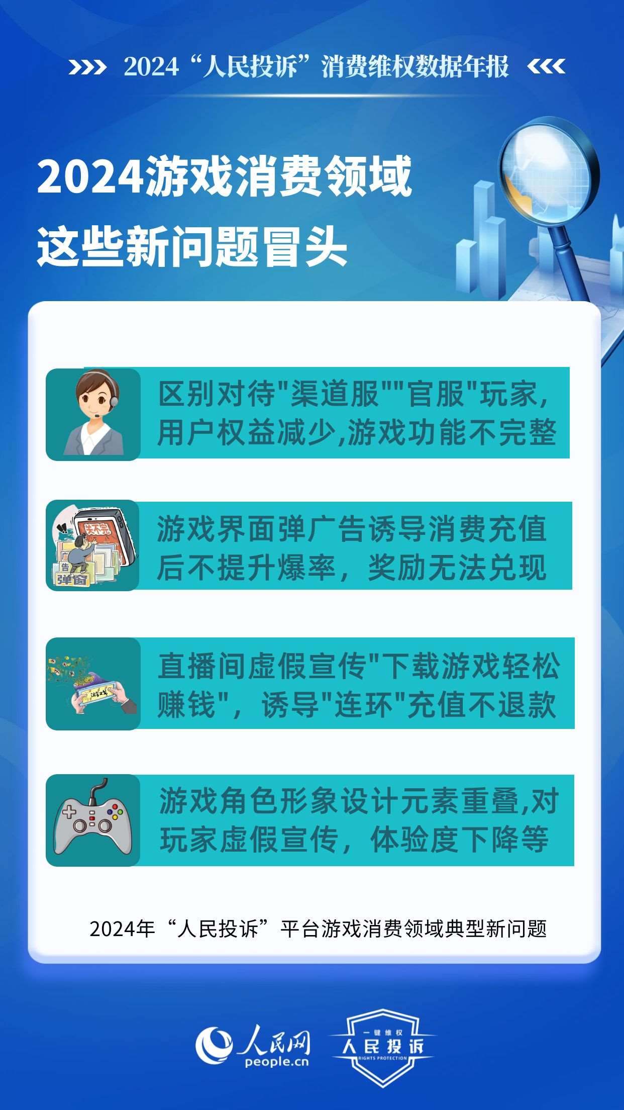 在游戲類,老問題主要有:未成年人網(wǎng)游消費不規(guī)范,平臺以“免費”“紅包”誘導(dǎo)點擊充值,未身份驗證、支付環(huán)節(jié)無提示,提交證據(jù)申請退款遭拒或退款金額不合理;虛假宣傳游戲內(nèi)容誘導(dǎo)充值點券,玩家實際回報/游戲體驗與預(yù)期不符;無故封號、游戲裝備丟失、賬號被盜、系統(tǒng)漏洞導(dǎo)致玩家利益受損,客服不回應(yīng)、平臺不理;系統(tǒng)漏洞、卡頓閃退、匹配機(jī)制失衡等網(wǎng)游體驗差等。
