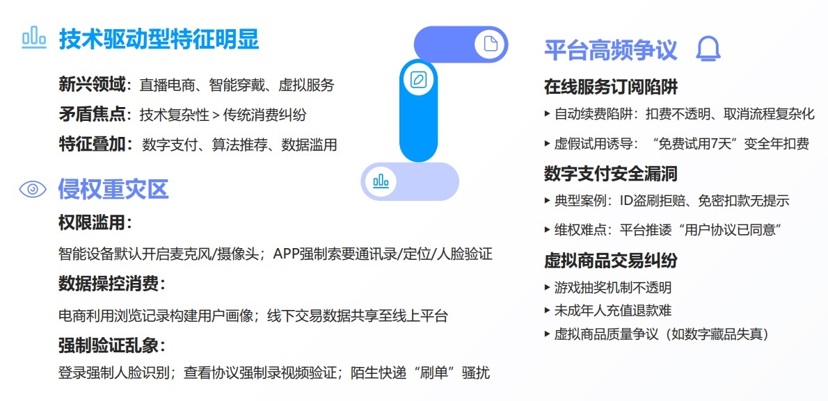 與此同時,隨著直播電商、智能穿戴、虛擬服務(wù)等數(shù)字化消費的爆發(fā)式增長,相關(guān)爭議也呈現(xiàn)上升趨勢。