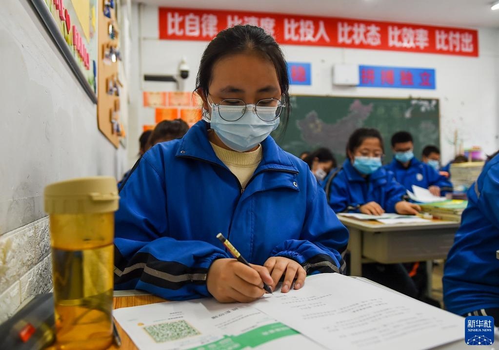 4月1日,呼和浩特市鐵路第二中學(xué)高三年級學(xué)生在教室里上課。
