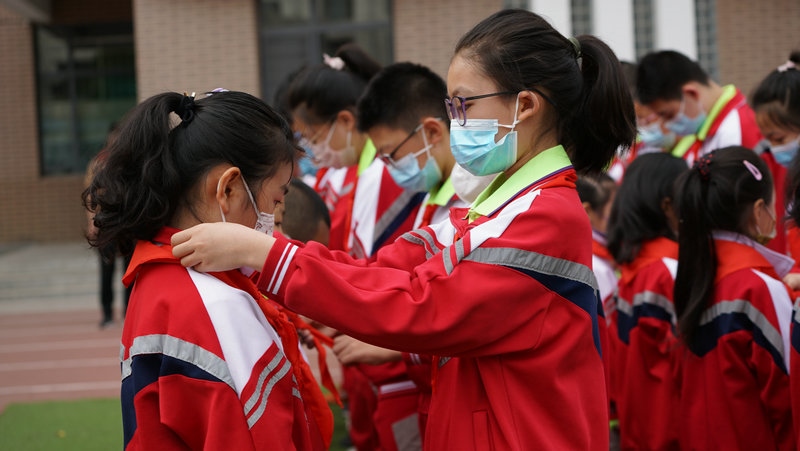新城區(qū)北垣小學舉行一年級新生分批入隊儀式。新隊員們戴上紅領巾,走在陽光下,熠熠生輝。學校利用好“六一”這個重要時間節(jié)點,開展入隊儀式、“紅領巾獎章”頒章儀式等,用好儀式教育,構(gòu)建階梯式成長激勵體系,不斷增強少先隊員的光榮感。