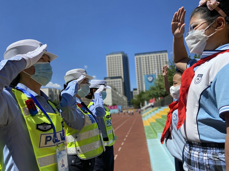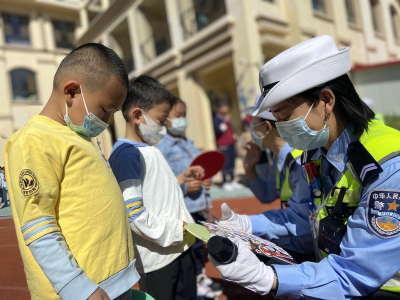 為進一步向轄區(qū)內(nèi)小學生普及交通安全知識,呼和浩特市公安局交通管理支隊賽罕大隊女警護學中隊民輔警走進校園,開展“交通安全小課堂”的安全教育活動,通過PPT講解、播放交通事故案例、互動問答、戶外游戲等多種形式,為小朋友們送去了一份交通安全知識的”六一“禮物。