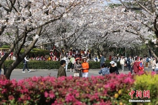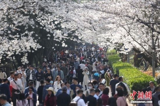 3月15日,武漢大學(xué)賞櫻預(yù)約首日,櫻花大道、鯤鵬廣場附近人潮涌動(dòng)。今年櫻花開放期間,武漢大學(xué)延續(xù)“實(shí)名限額、網(wǎng)絡(luò)預(yù)約、雙重核驗(yàn)”做法,面向社會(huì)公眾實(shí)行免費(fèi)預(yù)約賞櫻制,工作日每天預(yù)約限額1.5萬人,周末每天預(yù)約限額3萬人。此外,還將于3月18日舉辦醫(yī)護(hù)賞櫻專場,邀請?jiān)踽t(yī)療隊(duì)及湖北省內(nèi)抗疫醫(yī)護(hù)人員來校賞櫻,并在弘毅門(原西門)舉行歡迎儀式。 趙軍 攝