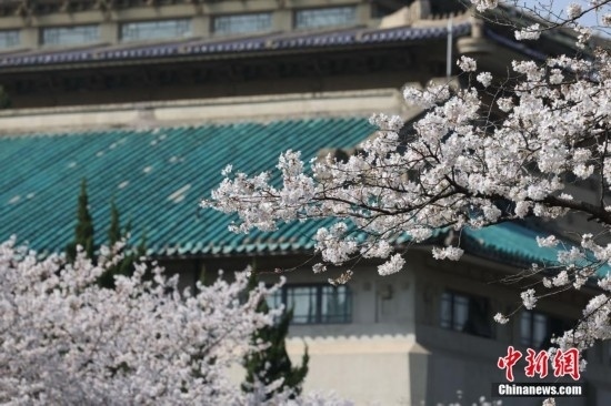 武漢大學(xué)櫻花綻放。