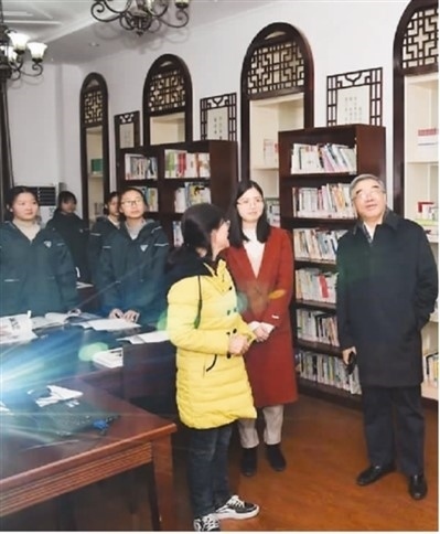 朱永新(右一)在基層開(kāi)展教育調(diào)研。資料圖片