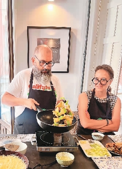 | 學(xué)員米蓋爾(左)和妻子參加由格大孔院開設(shè)的中華廚藝課。 |