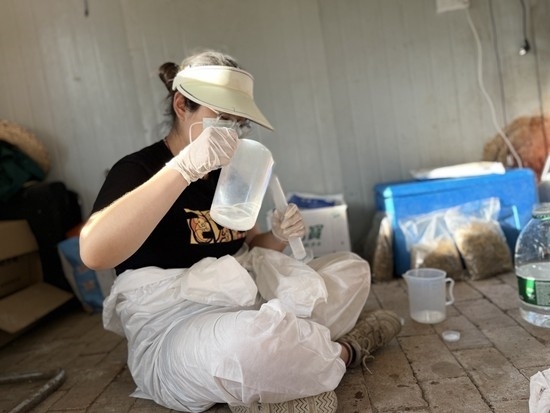 2022年7月,2022級(jí)碩士研究生張千子協(xié)助同學(xué)楊順然在科技小院進(jìn)行采樣工作。圖片由受訪者提供