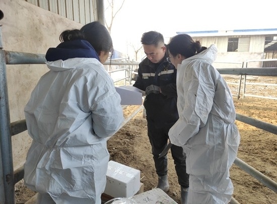 2月21日,科技小院專項(xiàng)研究生閔勝男給養(yǎng)殖場(chǎng)的肉牛采血。圖片由受訪者提供