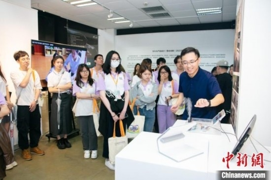 當日,香港大學生參觀了松江廣富林遺址公園后,來到上海視覺藝術學院與該校學生結伴交流,參觀該校設計學院和新媒體藝術學院畢業(yè)作品展。