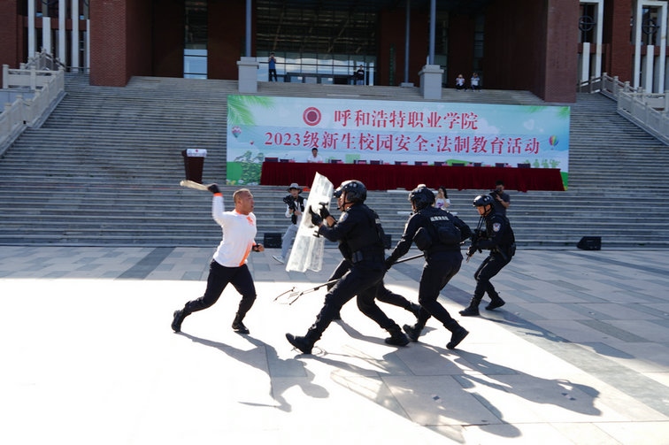 5500余名新生在軍訓(xùn)場上,英姿颯爽朝氣蓬勃,呼和浩特市公安局反恐怖和特巡警支隊(duì)教官團(tuán)隊(duì),通過現(xiàn)場授課及實(shí)操演練相結(jié)合的方式進(jìn)行了處突紅藍(lán)對抗演練(紅方為反恐怖和特巡警支隊(duì)民警,藍(lán)方為由反恐怖和特巡警支隊(duì)民警扮演的恐怖分子),指導(dǎo)學(xué)生在遇到危險情況下如何應(yīng)對。進(jìn)一步增強(qiáng)大學(xué)生的安全防范意識和自我保護(hù)能力。