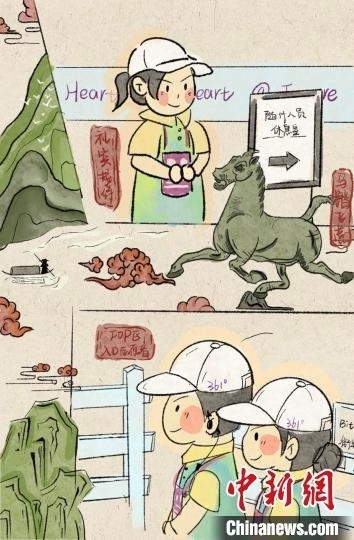 該組漫畫中,Q版人物配上荷花、祥云、馬匹等國風元素,既可愛又新潮。每一組漫畫繪制了兩類不同組別,共展現(xiàn)了11個領域的志愿者形象。