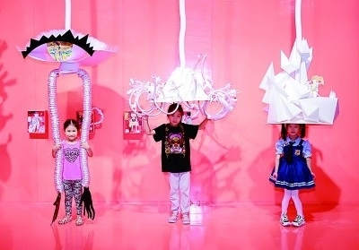 中華世紀壇展廳內(nèi),小朋友們正與裝置藝術(shù)作品進行互動。資料圖片