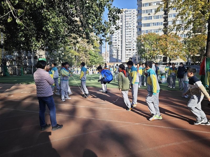為了引導(dǎo)孩子們課間走出教室,北醫(yī)附小根據(jù)季節(jié)設(shè)計大型集體項目,比如秋季開展的跳長繩,老師們也參與進(jìn)來搖繩,帶動更多孩子參加體育鍛煉?!白寣W(xué)生在課間得到充分休息、活動,才能保證學(xué)生的課堂狀態(tài),從而促進(jìn)課堂教育教學(xué)質(zhì)量提升?!碧飮⒈硎尽?/p>