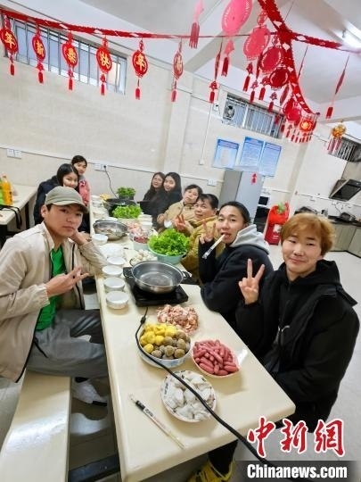 嶺南師范學(xué)院來(lái)華留學(xué)生在吃“年夜飯”。張一弛 攝