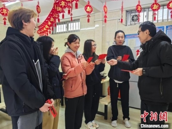 泰國(guó)留學(xué)生趙思妮說(shuō),最讓她開(kāi)心又興奮的是可以在吃年夜飯的時(shí)候,領(lǐng)到學(xué)校發(fā)的新年“紅包”,寓意安康吉祥、幸福美好。