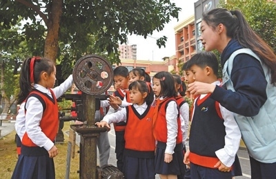 2022年3月,九龍坡區(qū)教委印發(fā)《關(guān)于推進(jìn)中小學(xué)集團(tuán)化辦學(xué)的意見》,謝家灣金茂小學(xué)成為謝家灣教育集團(tuán)一體化辦學(xué)成員校。謝家灣金茂小學(xué)的前身是重慶建設(shè)工業(yè)(集團(tuán))有限公司子弟學(xué)校,約1/3的教師曾是工廠職工?!盎趯W(xué)校情況,我們強(qiáng)調(diào)培養(yǎng)學(xué)生養(yǎng)成熱愛勞動(dòng)的習(xí)慣,形成陽光心態(tài)。”謝家灣金茂小學(xué)黨總支書記楊永財(cái)指著校園內(nèi)擺放的老舊機(jī)床說,“重慶建設(shè)工業(yè)(集團(tuán))有限公司發(fā)展歷史厚重,學(xué)校積極挖掘紅色資源,給孩子們講好革命歷史,上好思政課?!?/p>