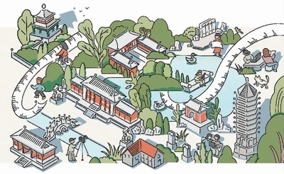 周 玨繪周玨畢業(yè)于北京大學考古文博學院,是一名職業(yè)插畫師,曾經(jīng)參加過導(dǎo)師張劍葳副教授組織的燕園文物數(shù)字化工作坊。她用畫作描述了師生參與燕南園歷史地段景觀保護與展示項目的情景?!把鄨@曾是我學習生活過的地方,又是值得研究與保護的文化遺產(chǎn)。燕園不僅以塔、湖聞名,還有西校門、辦公樓、紅五樓、校景亭、花神廟和燕南園?!?/p>