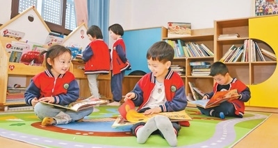 江西省萍鄉(xiāng)市實驗幼兒園的小朋友在閱讀繪本。 任乾良攝(影像中國)