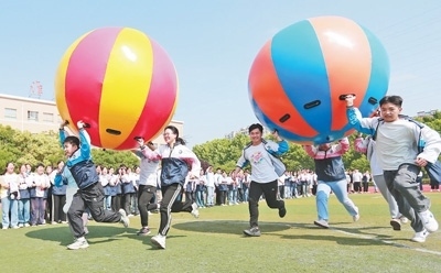 安徽省淮北市第十二中學,高三學生在參加趣味比賽。萬善朝攝(影像中國)