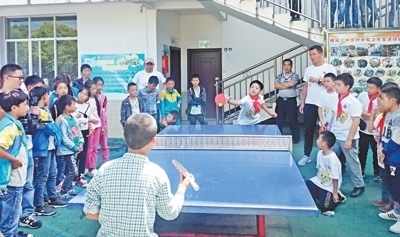 | 塘房小學(xué)學(xué)生和外校學(xué)生進(jìn)行乒乓球友誼賽。 |