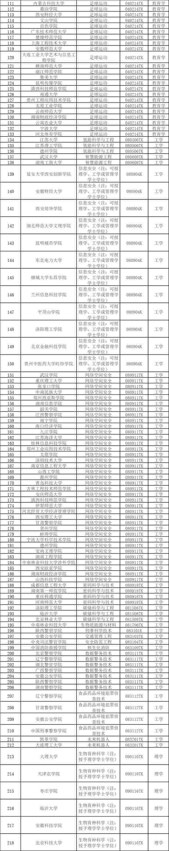 從申報的專業(yè)類型來看,2024年度共申報176種專業(yè)。其中,申報數(shù)量前五名的專業(yè)依次為:足球運動(39個)、網(wǎng)絡(luò)空間安全(37個)、運動訓(xùn)練(34 個)、健康與醫(yī)療保障(17個)、老年醫(yī)學(xué)與健康(14個)。