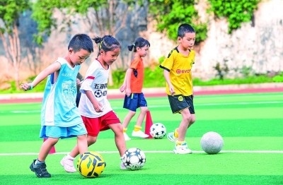 湖南永州一學校運動場,孩子們參加足球訓練。新華社發(fā)