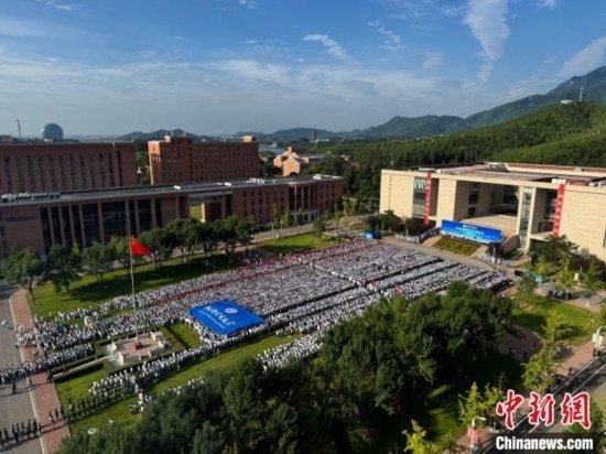 9月1日,國科大2024級新生開學(xué)典禮舉行,校園內(nèi)迎新氛圍濃郁,當(dāng)日天氣晴好,可遠眺長城。中新網(wǎng)記者 孫自法 攝