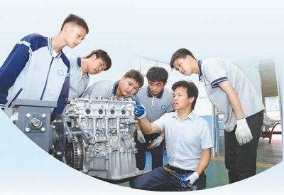 江西萍鄉(xiāng)市湘東中等專(zhuān)業(yè)學(xué)校,學(xué)生在學(xué)習(xí)發(fā)動(dòng)機(jī)拆裝與檢測(cè)技能。任乾良攝(影像中國(guó))