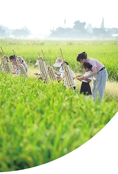 四川眉山市彭山區(qū)學(xué)院路幼兒園學(xué)生在田間寫(xiě)生。翁光建攝(影像中國(guó))