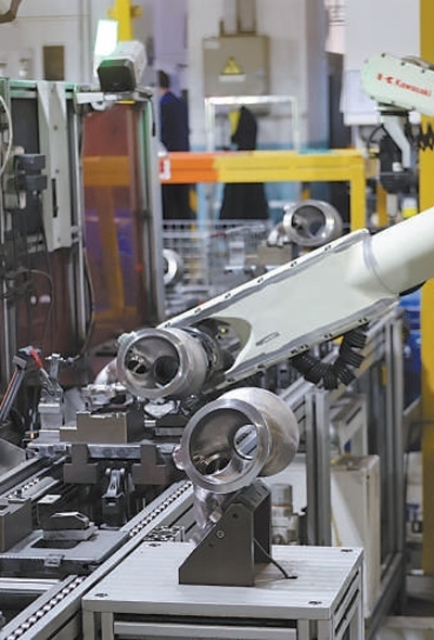 江蘇無錫職業(yè)技術(shù)學(xué)院教師團(tuán)隊(duì)為蠡湖增壓技術(shù)公司研發(fā)的殼體機(jī)器人自動(dòng)化去毛刺工作站正在作業(yè)。無錫職業(yè)技術(shù)學(xué)院黨委宣傳部供圖