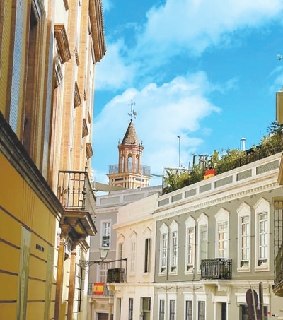 市中心的老城區(qū)商業(yè)街,現(xiàn)代與歷史交融得相得益彰——在這里,可以買到塞維利亞傳統(tǒng)民族舞蹈弗拉門戈的經(jīng)典裝扮,也找得到當代潮流設(shè)計師的前衛(wèi)設(shè)計;可以步入有百年歷史的手工藝品老店,也可以打卡開業(yè)不久透著青春潮流氣息的文創(chuàng)快閃店。我從路邊買一支巧克力橙皮口味的冰激凌,邊吃邊逛,覽不盡有趣街景。