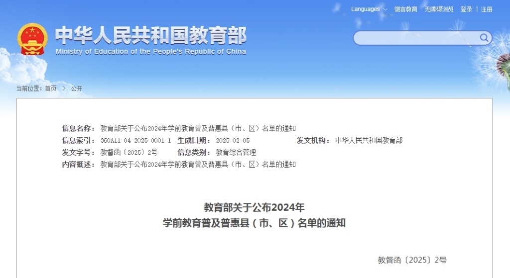 教育部認(rèn)定一批學(xué)前教育普及普惠縣 近日,教育部印發(fā)通知,通過縣級(jí)自評(píng)、市級(jí)初核、省級(jí)......
