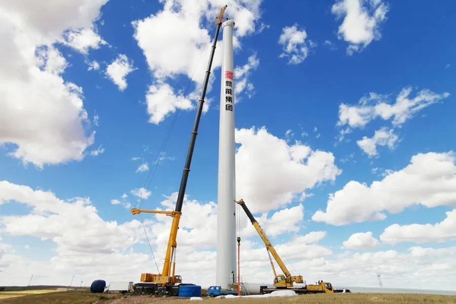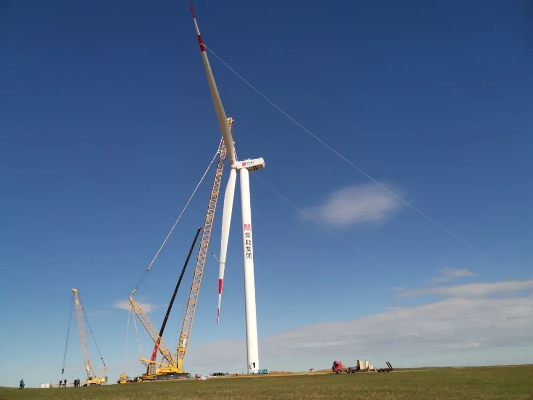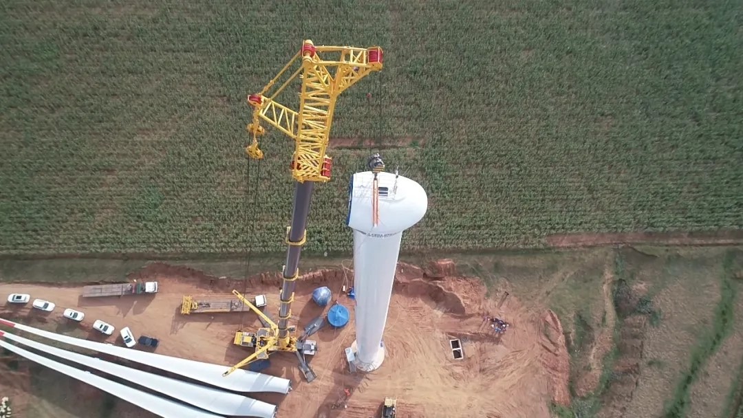 9月8日,第一臺(tái)風(fēng)機(jī)整體吊裝成功
