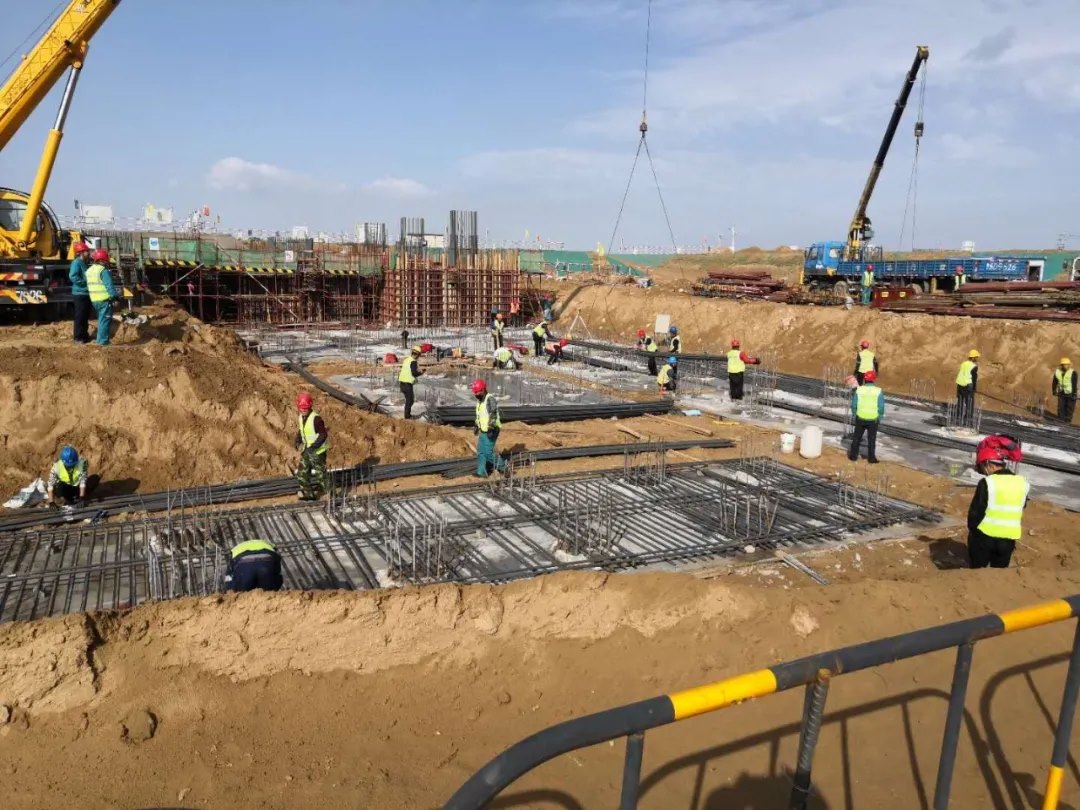 主廠房4號(hào)鍋爐承臺(tái)澆筑緊張進(jìn)行中