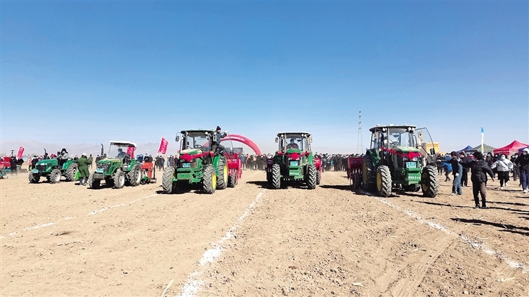 數(shù)臺播種機同時開播。內(nèi)蒙古日報社融媒體記者圖古斯畢力格 攝