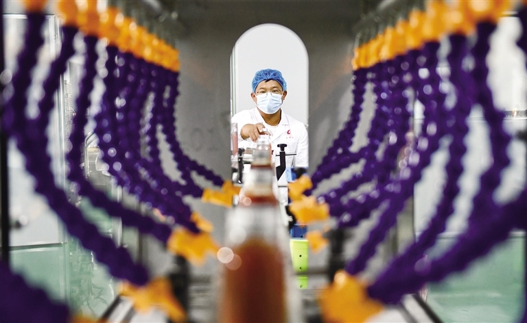 7月6日,內(nèi)蒙古昌興達實業(yè)有限責任公司的工人正在生產(chǎn)線上作業(yè)。該公司采取“公司+基地+農(nóng)戶”的標準化管理模式,與260多戶農(nóng)戶簽訂了有機枸杞種植協(xié)議,由公司免費為農(nóng)戶提供生物農(nóng)藥、管理技術(shù),并高于市場價回收,既保障了枸杞的品質(zhì),也促進了農(nóng)戶增收。廠區(qū)擁有枸杞干果、有機枸杞原漿、西紅柿原漿等多條生產(chǎn)線,產(chǎn)品出口歐美等26個國家和地區(qū)。(本報記者 孟和朝魯 攝)