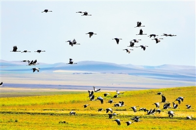 在這優(yōu)美畫卷中,蓑羽鶴就是額侖草原上的精靈,給草原平添了生命的活力。蓑羽鶴是鶴類中個(gè)體最小者,對生態(tài)環(huán)境質(zhì)量要求很高。從之前的形單影只,到現(xiàn)在的成群結(jié)隊(duì),蓑羽鶴對額侖草原的青睞,足以說明了額侖草原生態(tài)環(huán)境的保護(hù)成效。