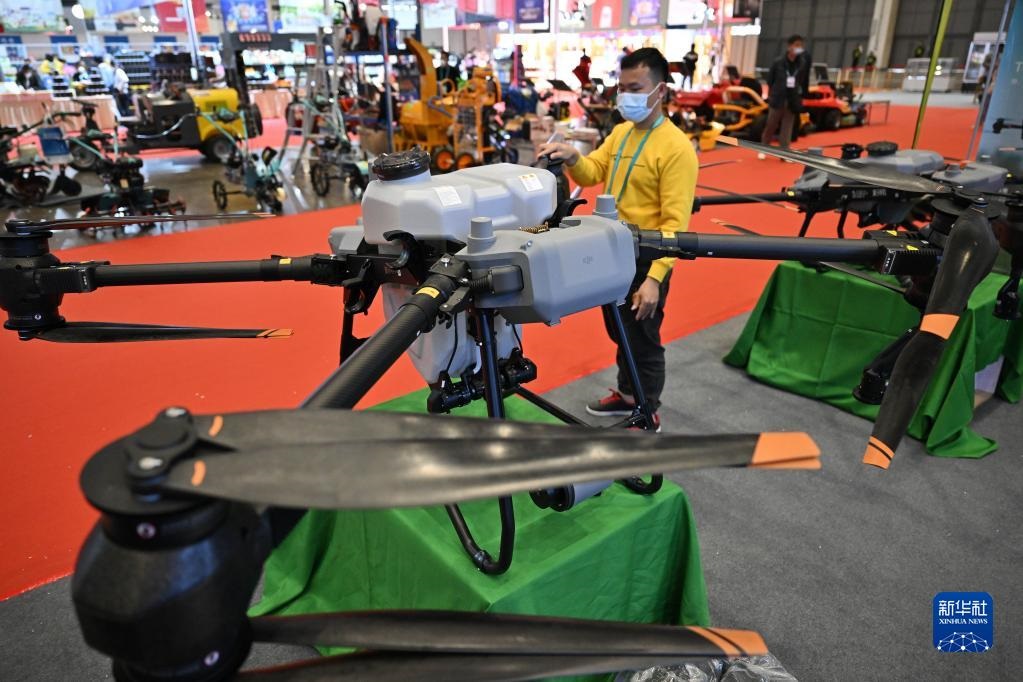 這是在科技強(qiáng)農(nóng)館展示的植保無人機(jī)(12月15日攝)。新華社記者 郭程 攝