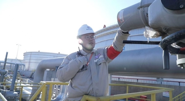 現(xiàn)場(chǎng)操作人員開啟接卸原油裝置。徐秋萍攝