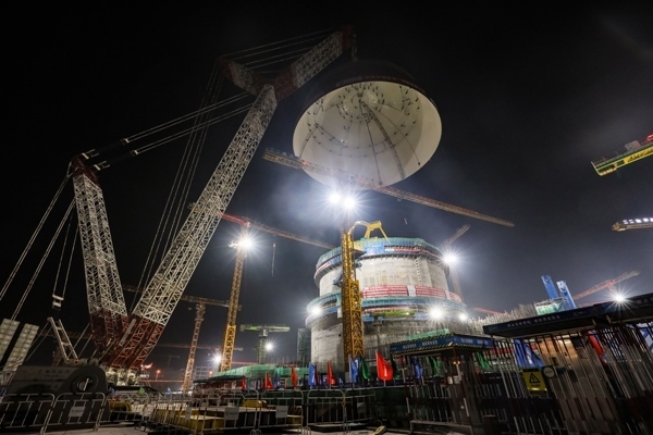 海南昌江核電二期3號(hào)機(jī)組內(nèi)穹頂成功吊裝。宋琨陽(yáng)攝