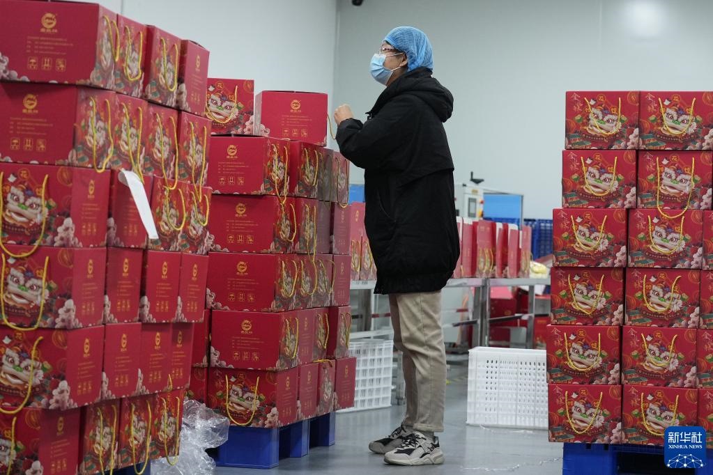 2月17日,威海長林生態(tài)農(nóng)業(yè)有限公司員工清點(diǎn)即將發(fā)運(yùn)的花餑餑產(chǎn)品。新華社記者 朱崢 攝