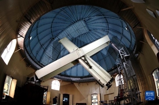 2月24日拍攝的上海佘山天文臺“鎮(zhèn)臺之寶”——40厘米雙筒折射望遠鏡。