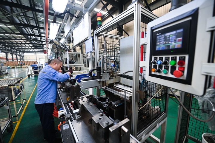 2022年9月27日,在位于浙江省諸暨市店口鎮(zhèn)工業(yè)區(qū)的浙江萬安科技股份有限公司數(shù)字化車間內,工人在流水線上生產(chǎn)作業(yè)。新華社記者 徐昱 攝
