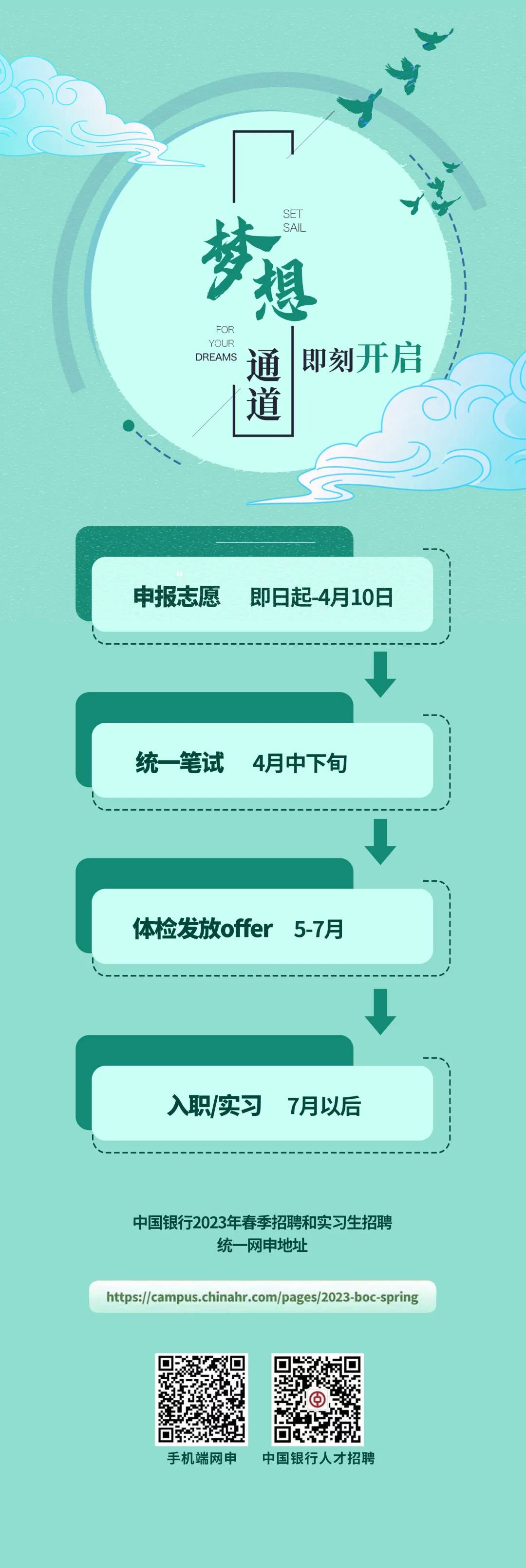 中國銀行內(nèi)蒙古區(qū)分行2023年春季招聘和實習(xí)生招聘全面啟動!